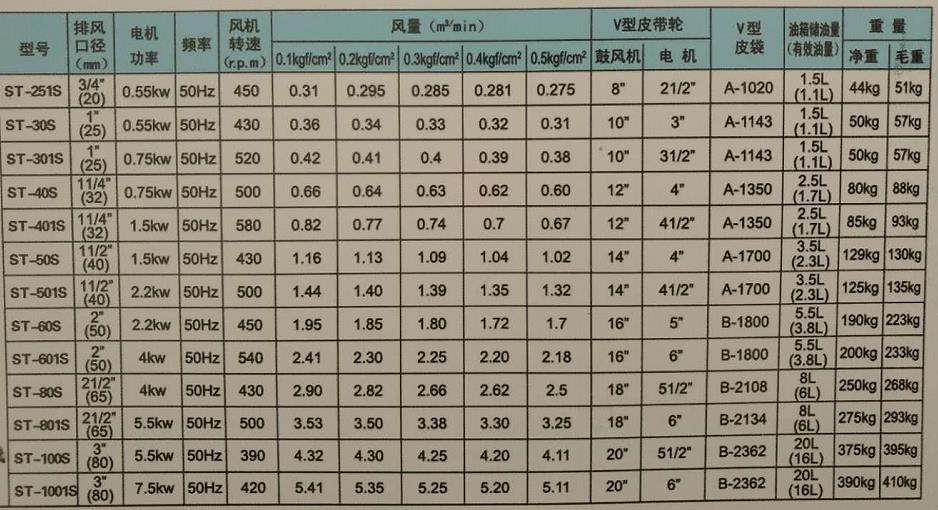 下面小編把回轉(滑片)式鼓風機的具體參數給大家參考一下,方便用戶在選型的時候可以直接選擇適合自己的配置。